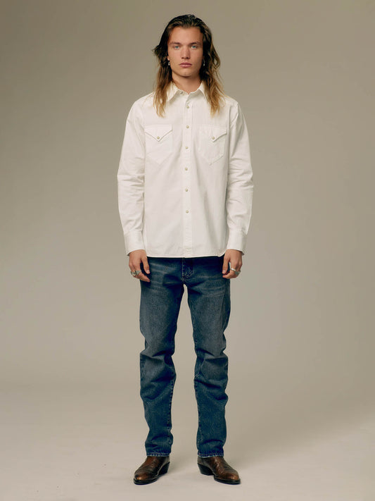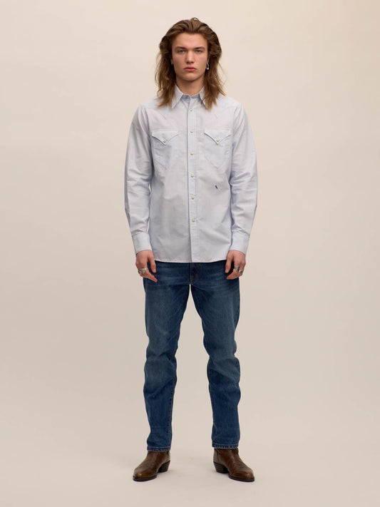The single-point pocket shirt might be the most iconic of them all, or at least the most common version of the western shirts. It is characterized by the single-point pocket flap in the center from where it derives its name. The Sneum® single point western shirt has been done with the scope to accentuate all quintessential design features that renders this western shirt staple so unique. This includes an accentuated, pointier, pocket and pocket flap. The yokes, considered a key element in western design, has likewise been accentuated rendering them more impactful and unique. In addition, a Navajo styled concho button has been added at the neck.