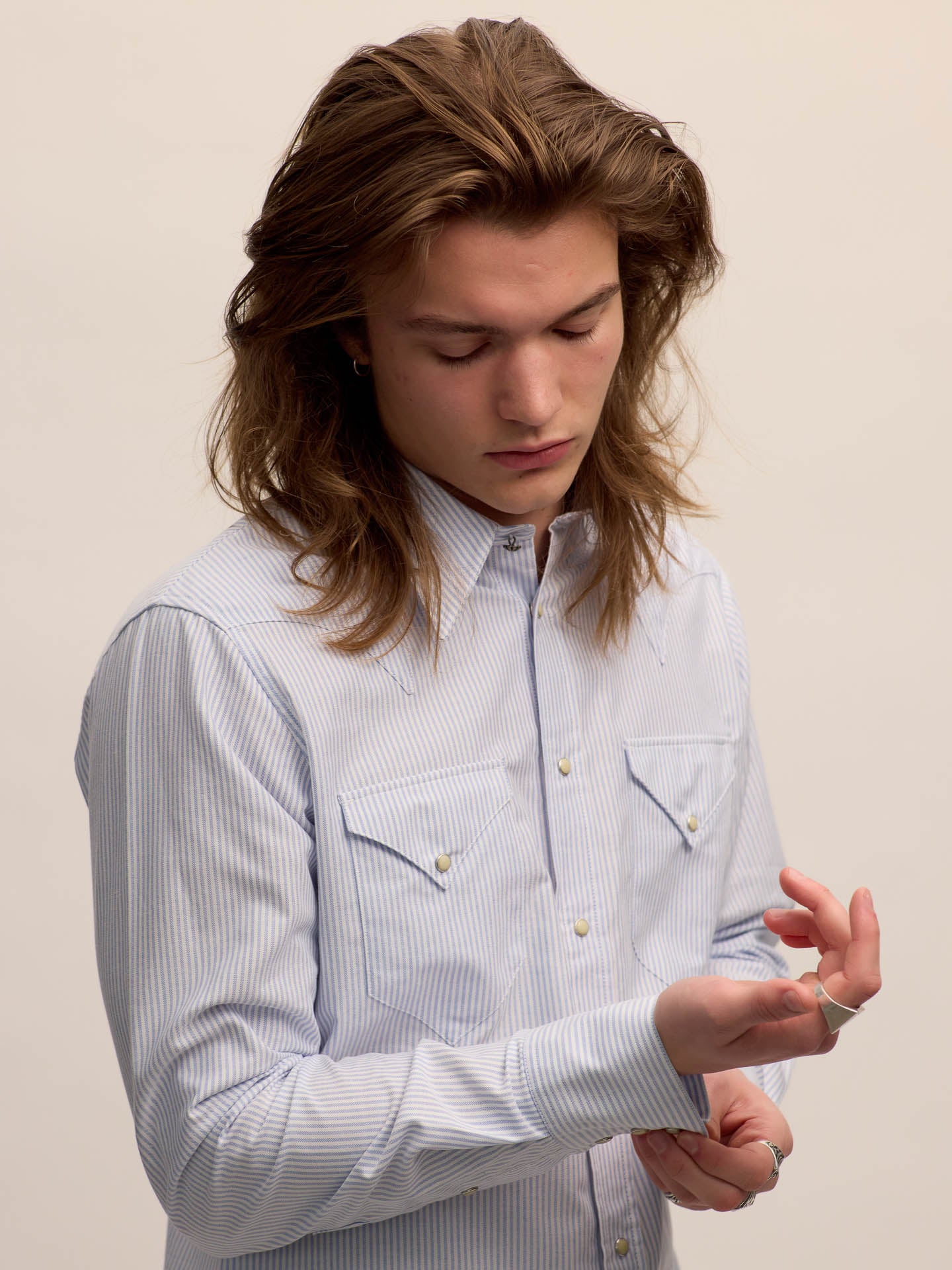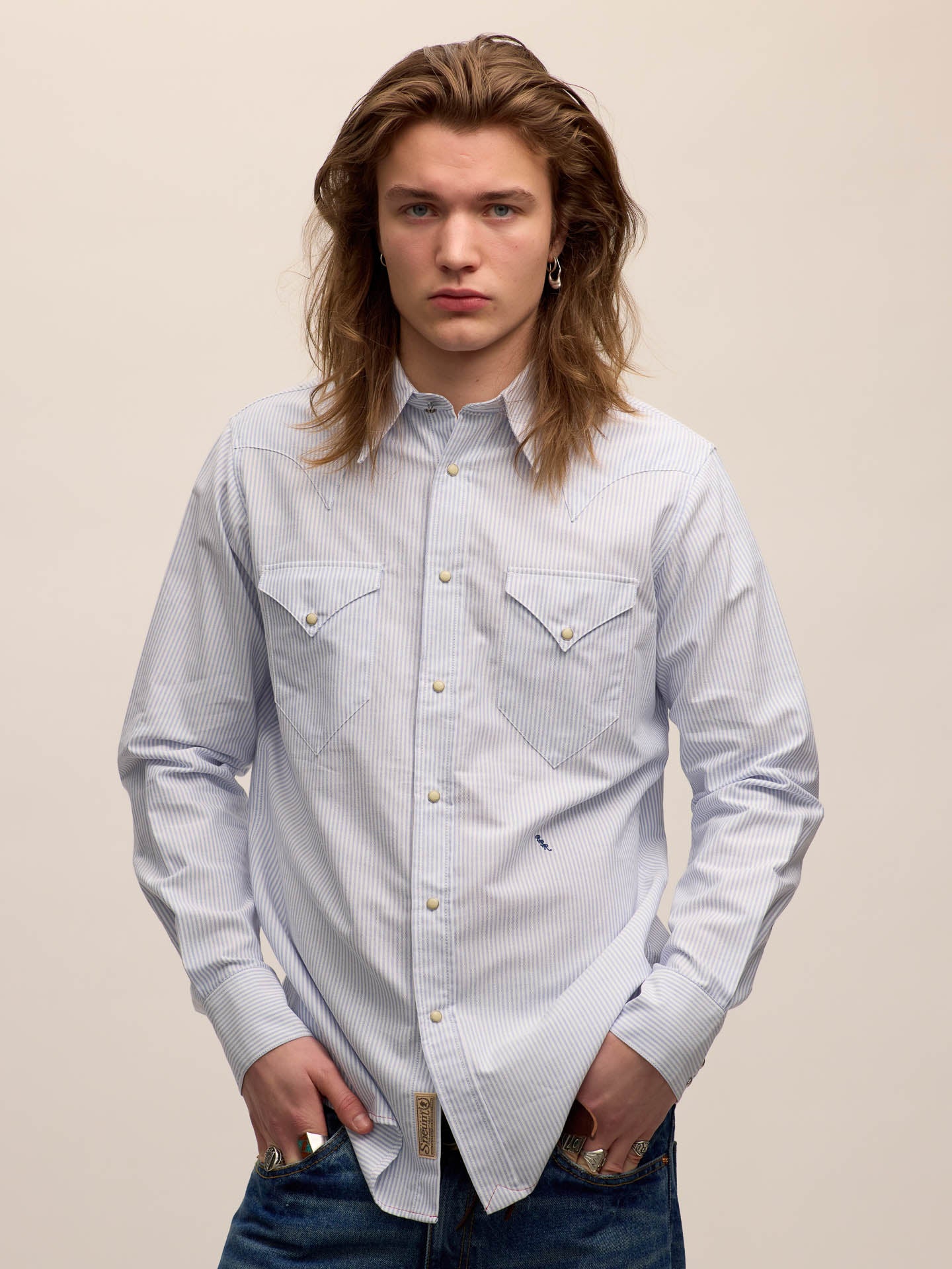 The single-point pocket shirt might be the most iconic of them all, or at least the most common version of the western shirts. It is characterized by the single-point pocket flap in the center from where it derives its name. The Sneum® single point western shirt has been done with the scope to accentuate all quintessential design features that renders this western shirt staple so unique. This includes an accentuated, pointier, pocket and pocket flap. The yokes, considered a key element in western design, has likewise been accentuated rendering them more impactful and unique. In addition, a Navajo styled concho button has been added at the neck.